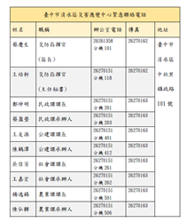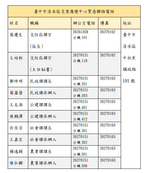 臺中市清水區災害應變中心緊急聯絡電話(詳附件)