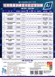 協助宣傳-115年短期職業訓練暨技能認證訓練計畫開班一覽表